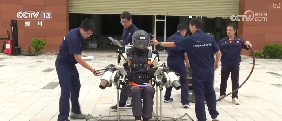 在广州市南沙区的广东空天科技研究院,这款以矢量涡喷发动机阵列为动力的单人飞行载具正在进行调试。这款载具已经实现了载人8分钟的自由飞行,其灵活的起降性能为应急救援、特勤作业等场景提供了全新解决方案。
