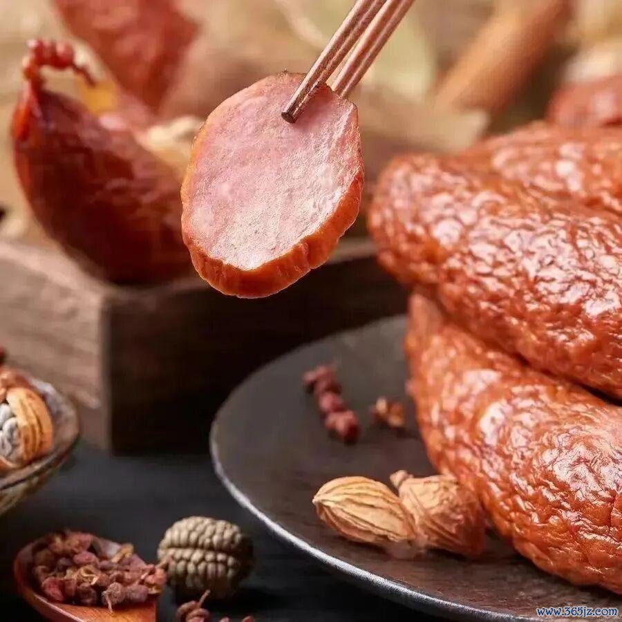 关键重要的步骤是灌肠时,会加入大蒜、白砂糖、香辛料等配料。还会添加一定比例的牛肉,让肉质更有弹性有嚼劲。